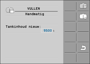Wanneer u de spuitvloeistoftank zonder bijkomende systemen vult, dan moet u de nieuwe inhoud manueel in de terminal invoeren.
