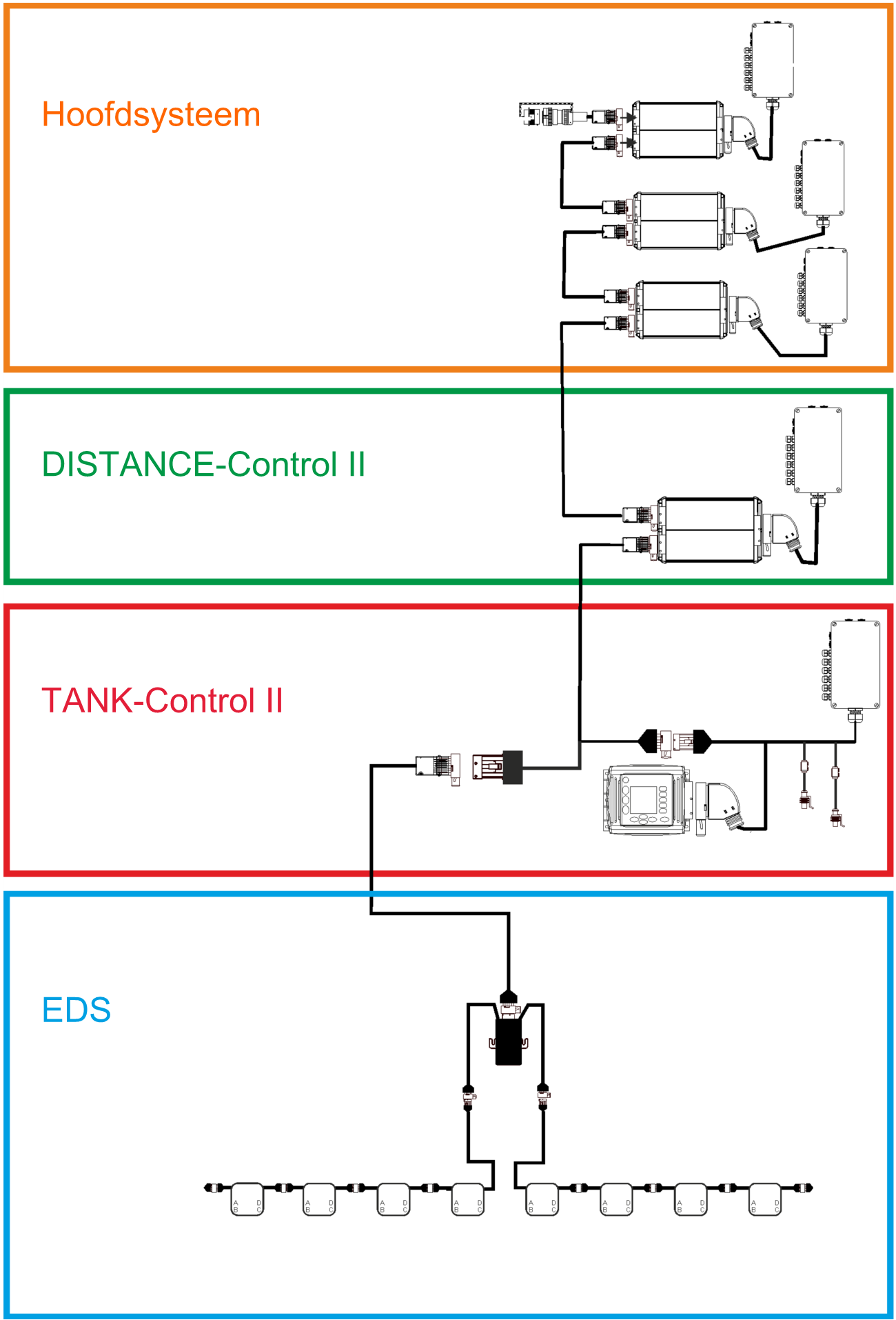 Afhankelijk van welke jobcomputer als basisjobcomputer van het hoofdsysteem genomen wordt, en welke extra componenten gemonteerd worden, kan het totale systeem verschillende afmetingen hebben.