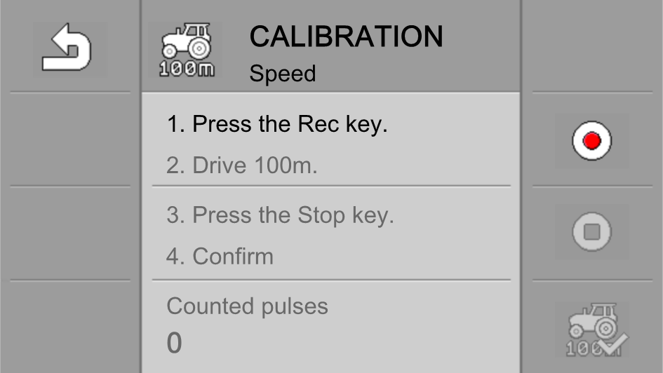 - Position the tractor with connected implement at the beginning of the marked distance.