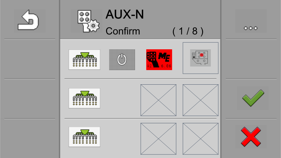 If an AUX-2 operating device (e.g.: joystick) is detected, an overview of the configured button assignment is shown every time the terminal is started.