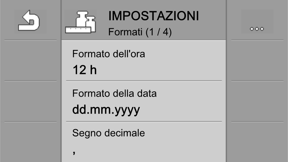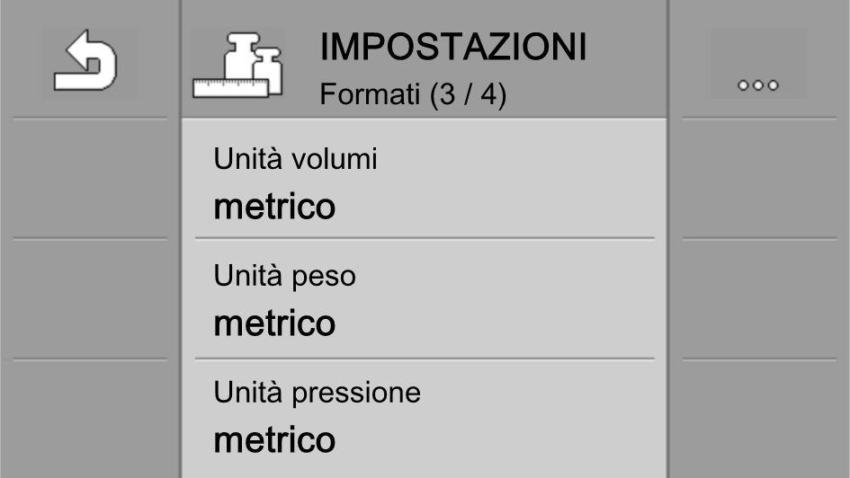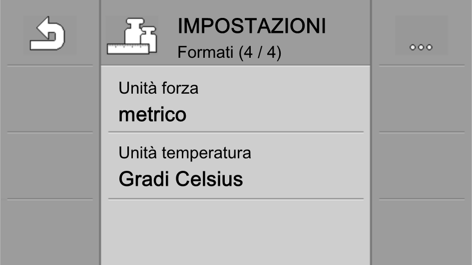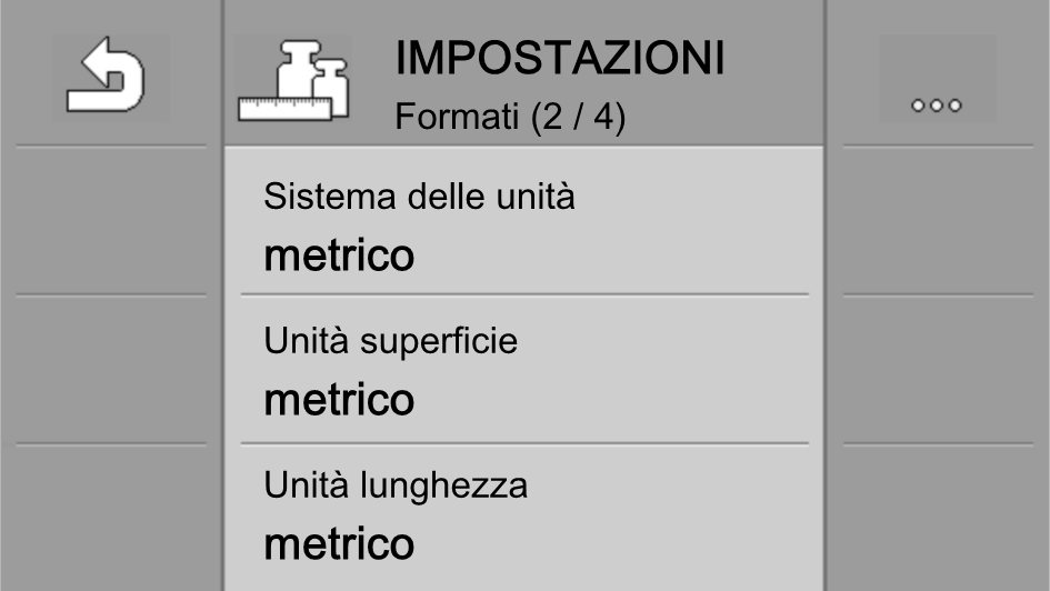 Nella schermata "Formati”, è possibile specificare con quali unità devono operare il terminale e i dispositivi collegati.