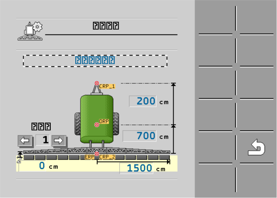 CRP – 附着点或开始测量点。对于自行式田间喷雾机,CRP 可以是 GPS 接收器的位置;对于悬挂和牵引式喷雾机,它可以是安装点或附着点。