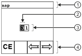| Fejléc területe Annak a paraméternek a megjelölését tartalmazza, amelynek az értéke bevitelre kerül. | | Beviteli mező Számmezőket tartalmaz az érték beviteléhez. |
