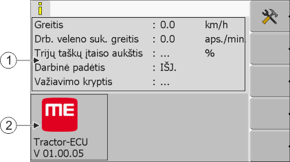 Taikomoji programa „Tractor-ECU“ naudojama informacijai apie transporto priemonę, kurioje sumontuotas terminalas, apibendrinti. „Tractor-ECU“ gali perduoti šią informaciją į kitas taikomąsias programas (pvz., GPS imtuvo padėtį į „TRACK-Leader“ arba „SECTION-Conrtol“) arba į prijungtą „ISOBUS“ darbo kompiuterį (GPS signalą kaip greičio šaltinį).