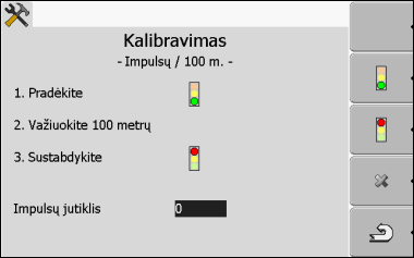 Greičio jutiklį kalibruodami 100 metrų metodu, nustatysite impulsų skaičių, kurį greičio jutiklis priima 100 metrų atkarpoje.