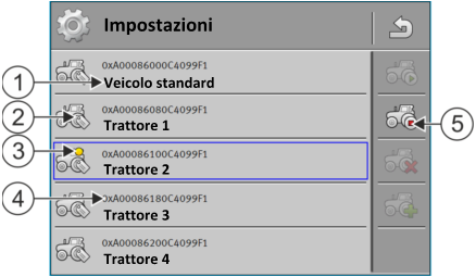 - Verranno visualizzati i profili trattore disponibili.