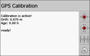 - Displays the reference point drift since the reference point was set. All field data will be shifted by this value. The drift is re-calculated when the GPS signal is calibrated.